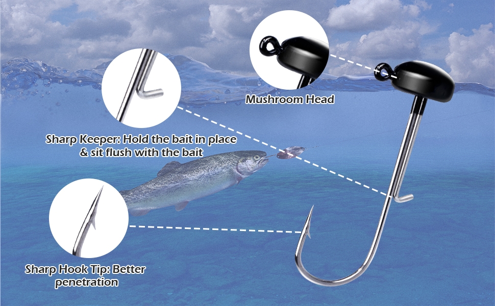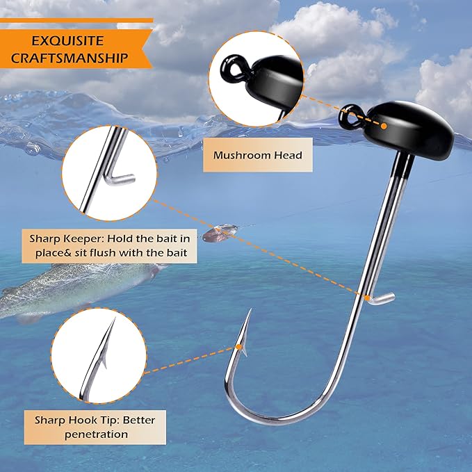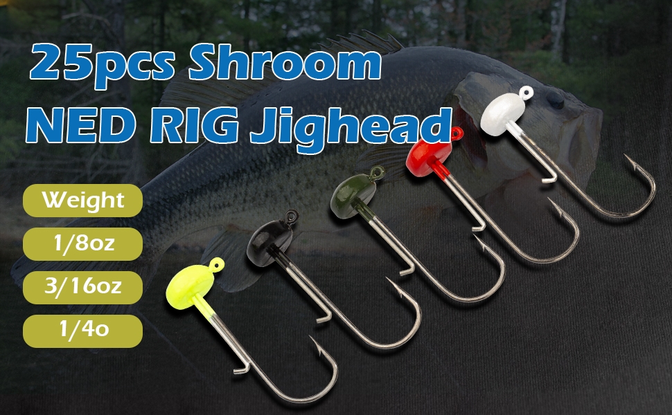 Mushroom Jig Heads 25 Pack – Weedless Ned Rig Jig Hooks for Bass Fishing, Round Shroom Jigs in 1/8oz 3/16oz 1/4oz Sizes